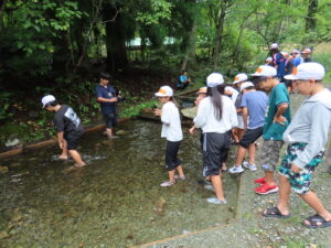 9/12(金) ~9/16(火) 5年生がハチ高原で4泊5日の自然学校を実施しました。カヌー・カヤック体験に始まり、鉢伏山登山、竹箸作り、焼き板作り、ツリークライミング、魚つかみ、飯盒炊飯、キャンプファイヤーなど、本当にたくさんの「自然学校だからできる」「自然学校でしかできない」様々なことを体験しました。自然学校を通してたくさんのことを学び、たくましくなって帰ってきました。