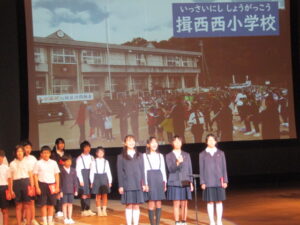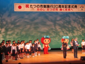 10月5日(日)に6年生児童4名が学校代表として市制施行20周年記念式典に参加しました。式典では大勢の観客の前で揖西西小学校のいいところをしっかりPRできました!
